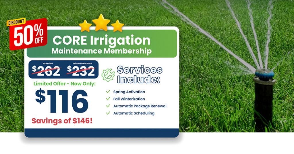 HOW IT WORKS: By entering your address below, you will be redirected to a secure site to select and pay for your Core Irrigation Membership Package. Use discount code CORE2026 at checkout and receive $109 off your Core Membership!